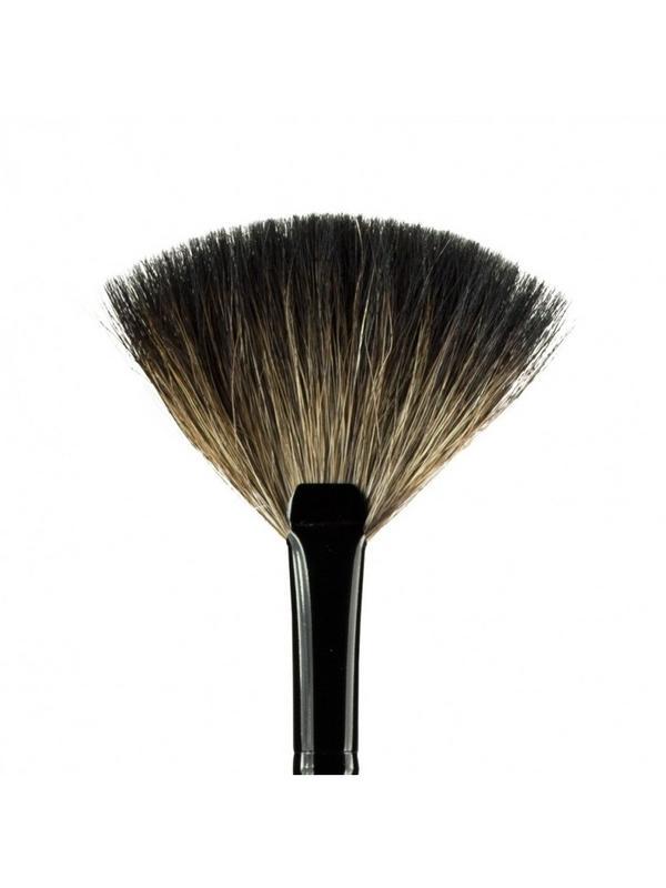 Brocha en forma de abanico para aplicar y difuminar los iluminadores en polvo